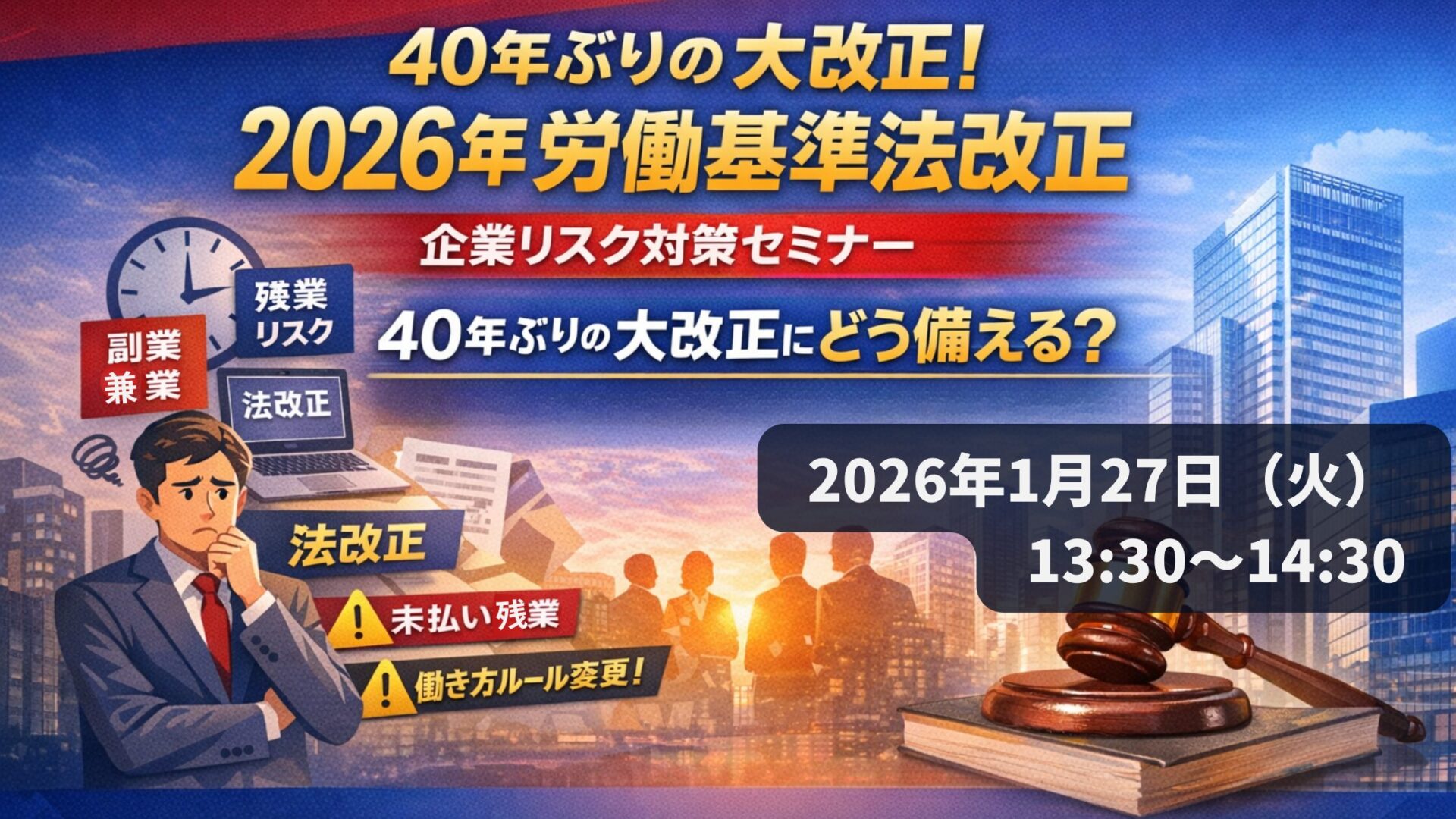 ホーム >> セミナー >> 40年ぶりの大改正! 2026年労働基準法改正 に備える企業リスク 対策セミナー